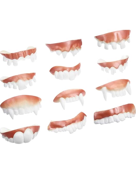 Amazon Com Odowalker 10 Pcs Fake Teeth Toy Funny Fake False Teeth Vampire Denture Teeth Halloween Decoration Props Costume Party Funny Gag Gift Toys Games